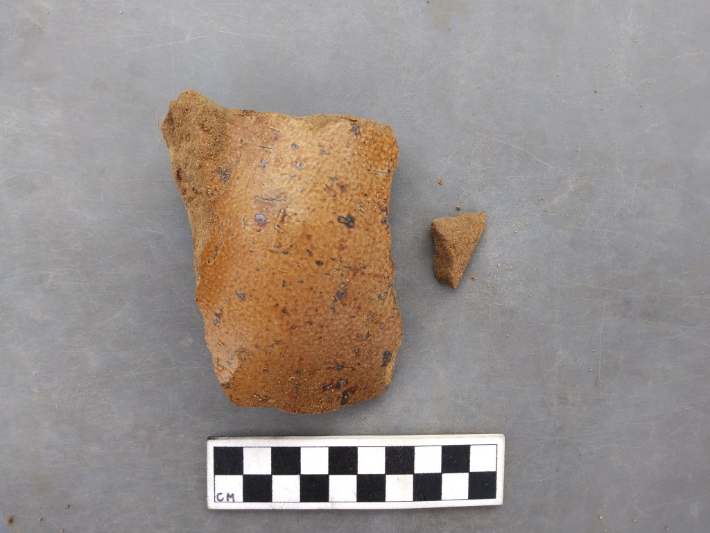 Another common historic artifact that you might find is stoneware. Like whiteware, stoneware is a glazed ceramic. However, stoneware has been fired at a higher temperature than whiteware, and it is generally thicker. Stoneware was often used to make jugs or other storage vessels, rather than tableware. In the days before refrigeration or plastic Tupperware, farmers often stored their food in stoneware jugs, in the root cellars below their houses.