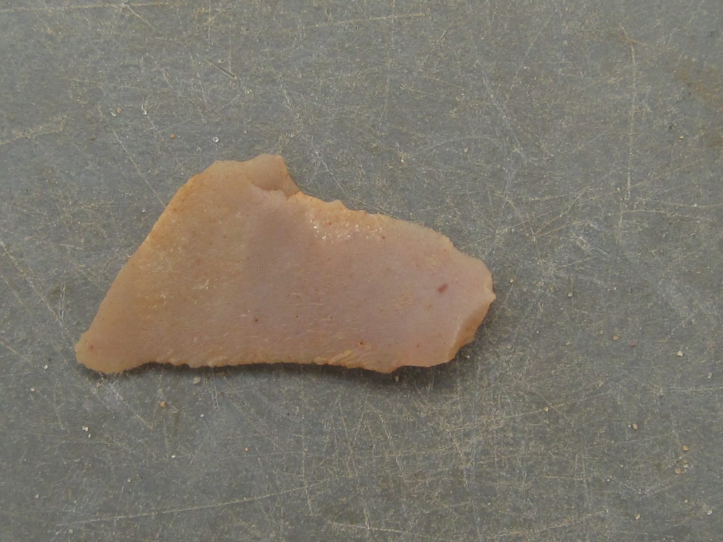 Sometimes, broken projectile points were reused as scrapers. Unlike most scrapers, these would be bifacial. Below is an example.