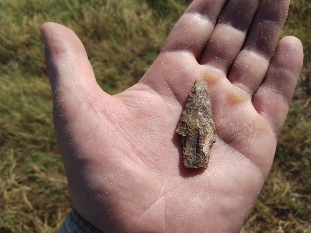 The ancestors of the Lakota almost certainly knew how to make stone tools at some point in the past. But it appears that, sometime in the historic or protohistoric period, they began to use stone tools they had found on the prairie rather than making their own. It’s clear that the historic Lakota collected some stone projectile points that had been made in earlier times and relocated them to their own camps. If an archaeologist came upon this camp later, he or she might erroneously assume that the projectile point was made at the same time the later camp was occupied. This is something to think about, especially if you are surveying on the Northern Plains, or any other place where projectile points are easily observable on the surface.