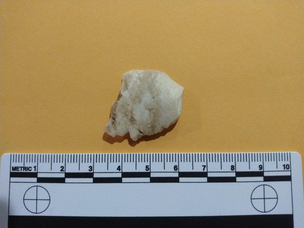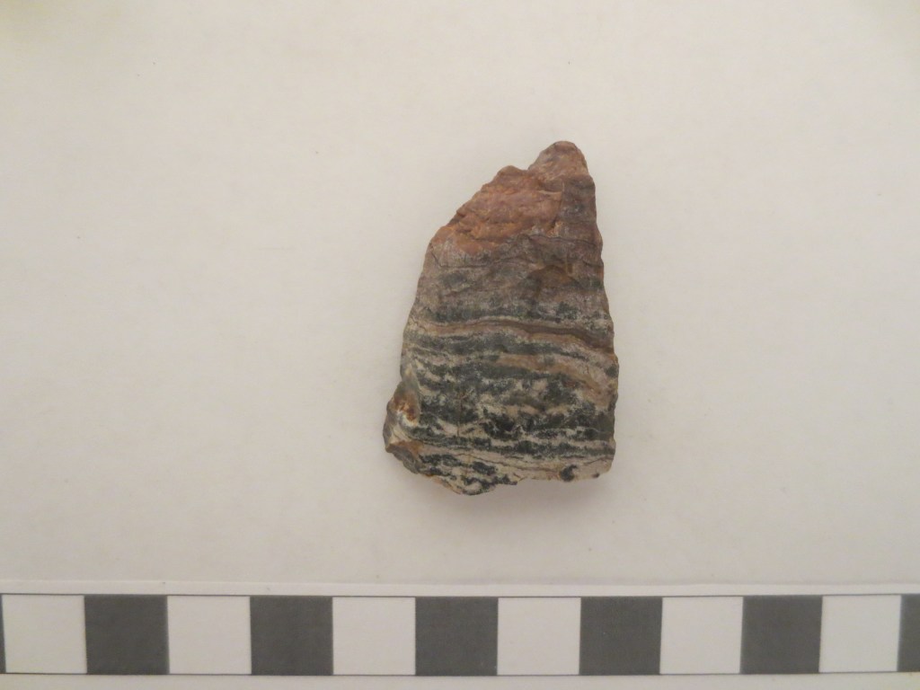 In addition to identifying flakes as flakes, and identifying which stage in the lithic reduction process to which they belong, it can also be very useful for field techs to identify the geological material from which a flake (or tool) was made. This is called “Raw Materials Sourcing.”