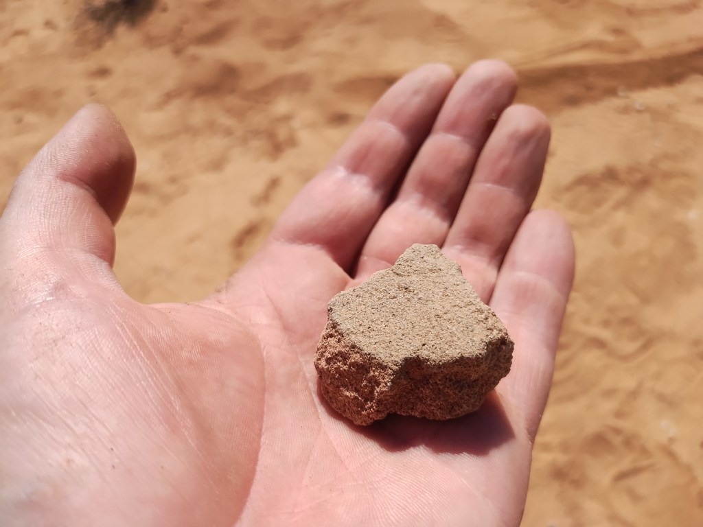 And here is a fragment of a metate, a ground stone tool that was probably used for processing plant matter of some kind. It can be identified as a ground stone tool by touch, as one surface has been worn unnaturally smooth.