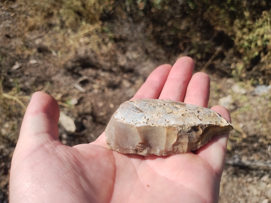 I would argue that the most fundamental skill for any archaeological field technician working in the United States is the ability to identify lithics, especially lithic debitage. Below, I will try to explain why. I will also make an effort to teach readers how to identify lithics in the field. However, I would like to emphasize that this blog post on its own will not be sufficient for training readers how to identify chipped stone tools and debitage—in part because the defining characteristics that allow you to identify debitage don’t always show up very well in photographs (which is probably part of the reason that so many lithic analysts prefer illustrations). The best way to become familiar with lithic debitage is to handle thousands of flakes of debitage in person.