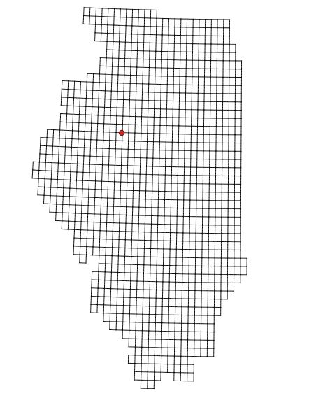 The historic silo I’ve been discussing falls within a 7.5 minute quadrangle known as Farmington East Quadrangle (named after the nearby town of Farmington, Illinois). The map below shows its location, imposed over the dozens of quadrangles that cover parts of the state of Illinois (note: this map does not show all quadrangles in the United States).