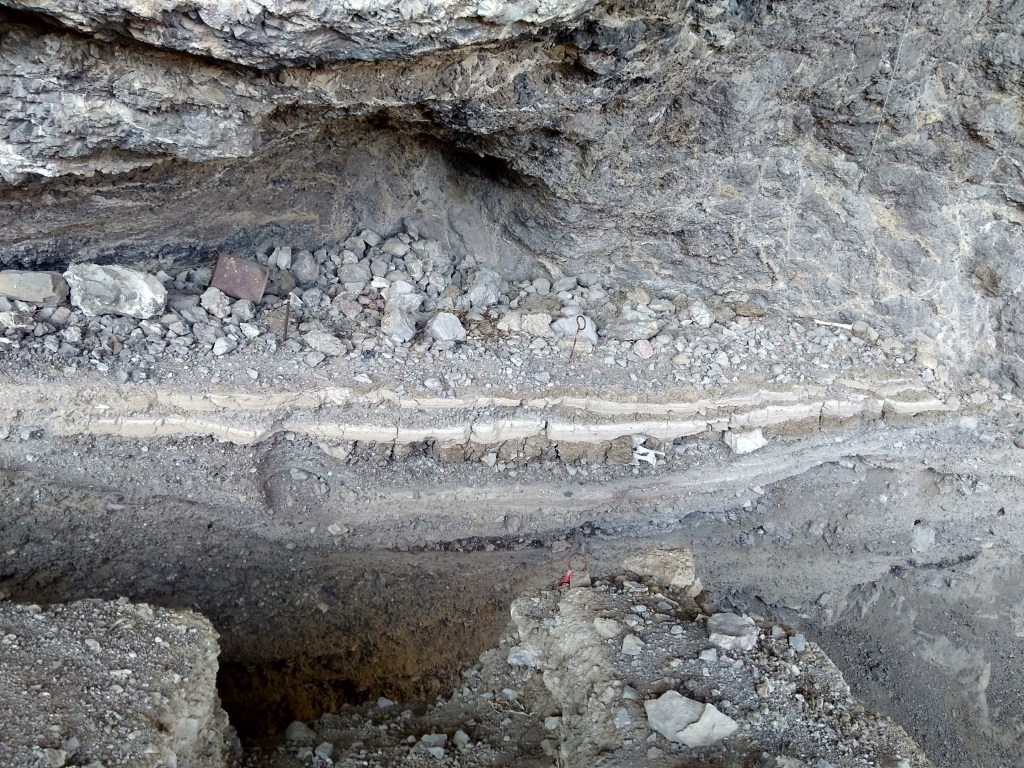 The least disruptive method of identifying an archaeological site within a rockshelter is to look for artifacts on the surface. This may be a problem, because the accumulation of sediment on the floor has likely buried all the artifacts and hidden them from view. But artifacts may still be visible along the “dripline.”
