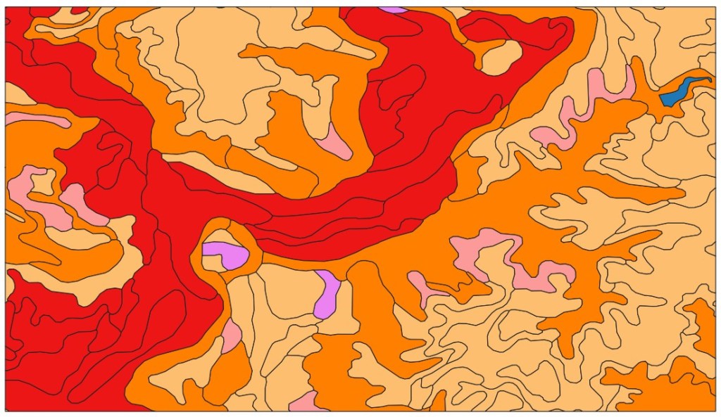 And here is an unlabeled map of the soil units within that area: